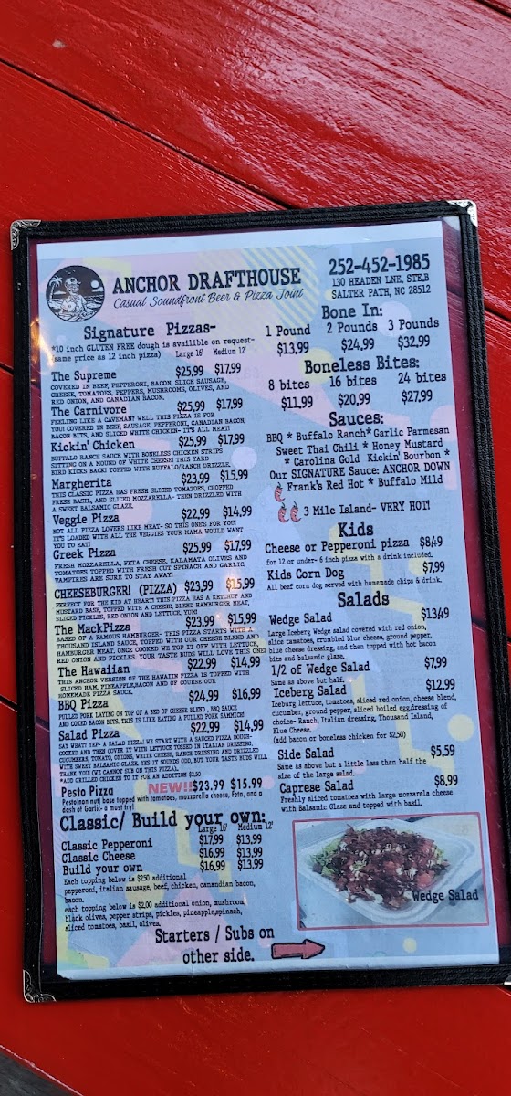 Welcome to Anchor Drafthouse, a hidden gem nestled in the scenic Atlantic Beach, NC. This vibrant eatery offers a delightful menu that highlights its reputation for exceptional pizza and award-winning wings. Guests can savor their meals alfresco by the water or enjoy the lively atmosphere indoors, surrounded by quirky pop-culture memorabilia.